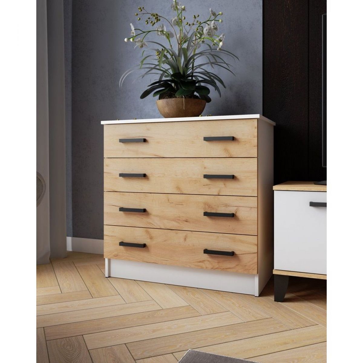 Интернет-магазин "Мебель 24" рад предложить Комод КМ-2 ЛДСП Белый/ ЛДСП Дуб крафт золотой по привлекательной цене, от производителя МИКОН (г. Пенза).