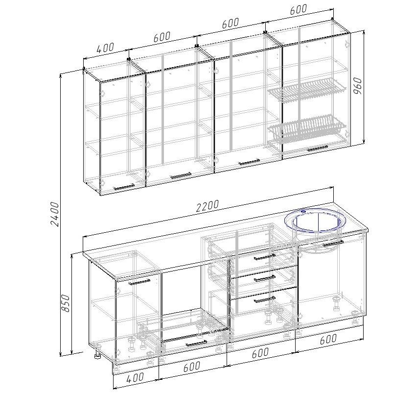 Размеры (Ш*В*Г)(мм): 2200*0*600