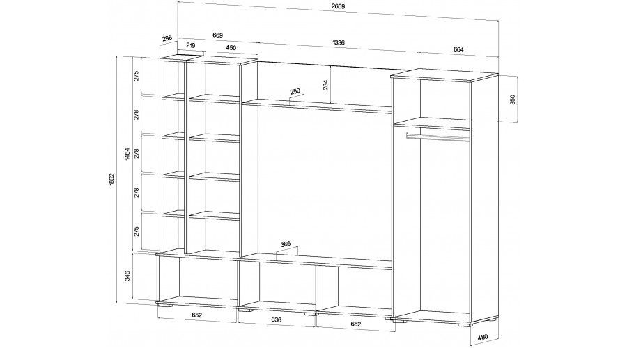 Габаритные размеры Ш*Г*В: 2669*480*1862 мм