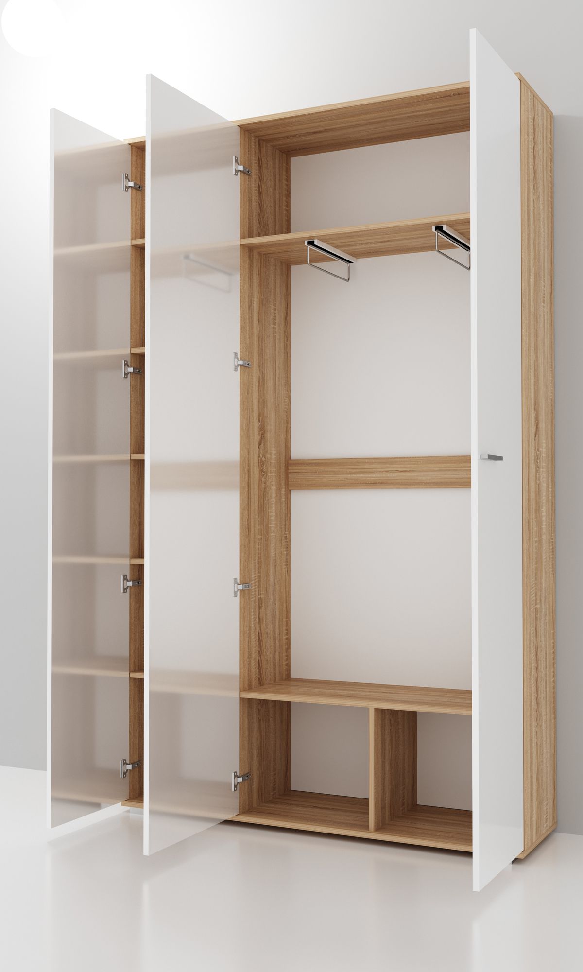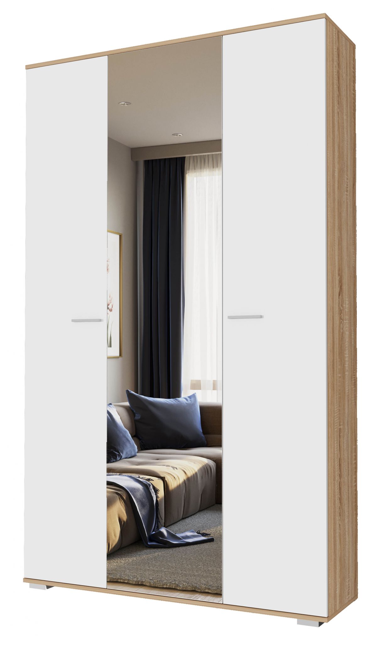 ИТАЛИЯ ШК-1300 Шкаф 3 дв. с зеркалом (Дуб сонома/Белый глянец)