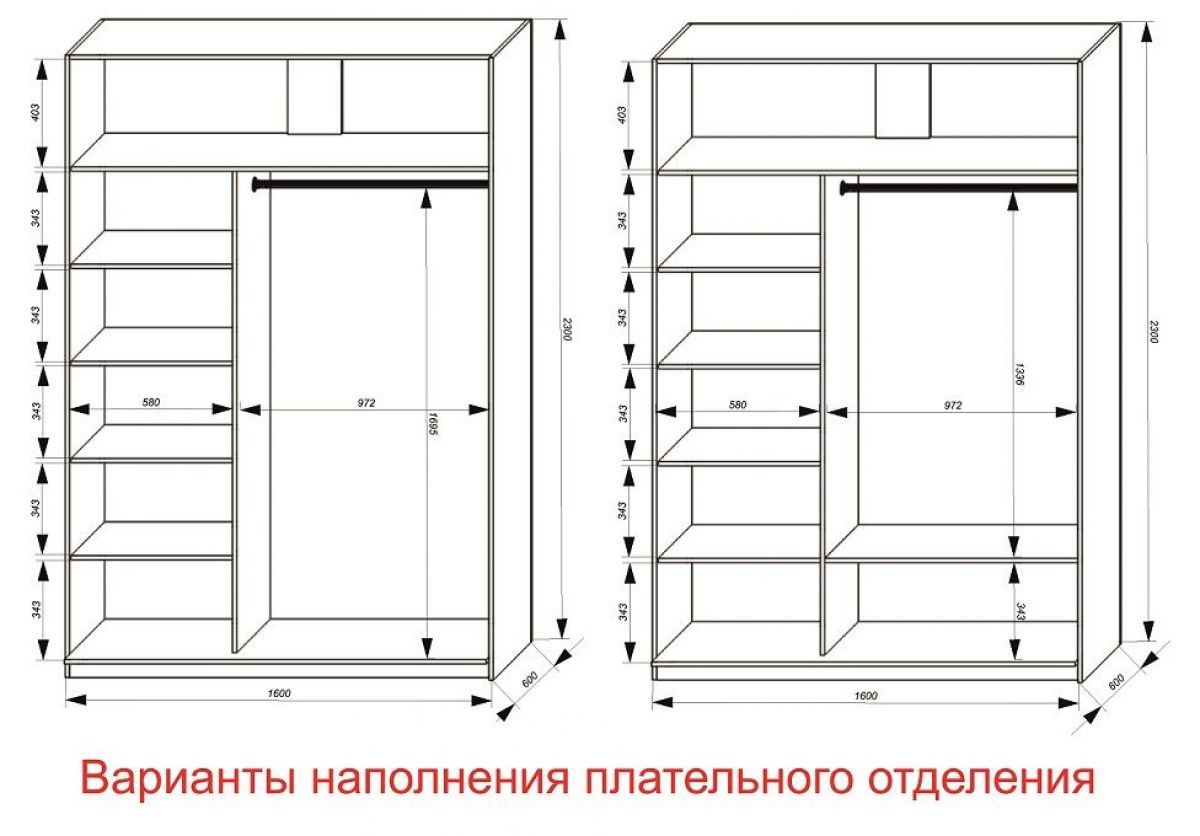 Шкаф-купе 1600 серии SOFT D1+D3+B2+PL1 (2 ящика+1штанга) профиль «Графит»