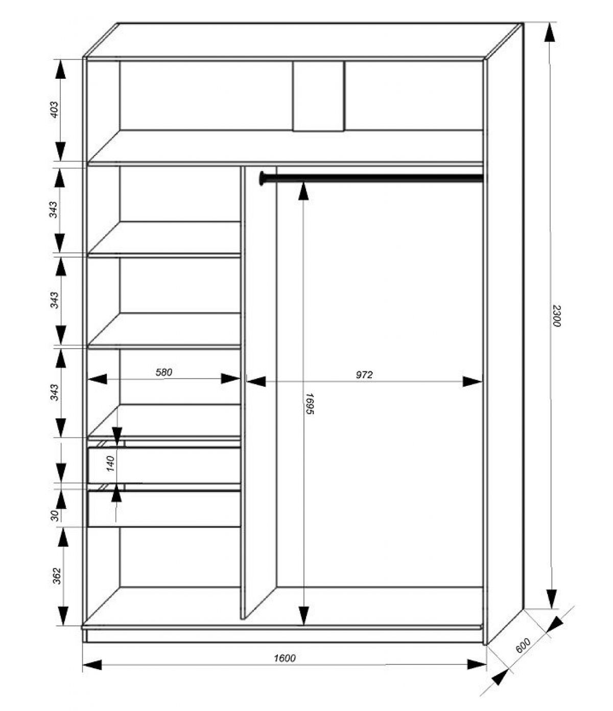 Размеры (Ш*В*Г)(мм): 1600*2300*600