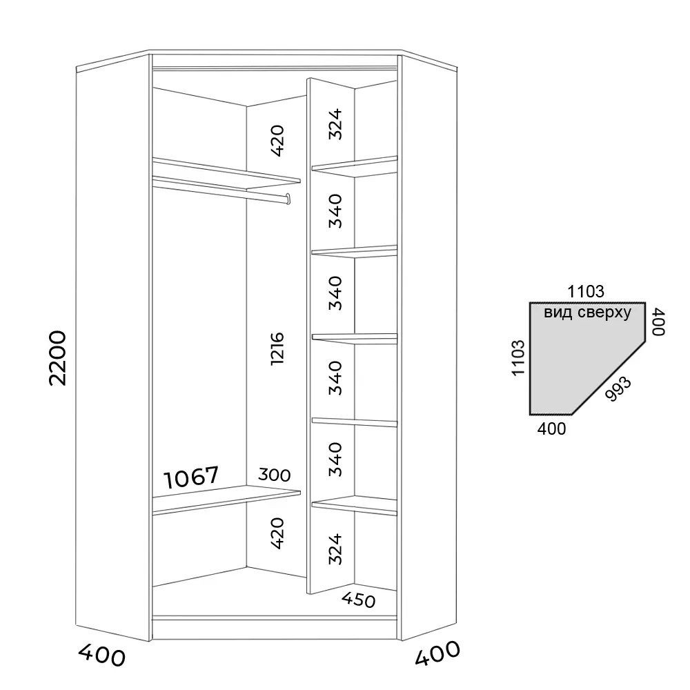 Размеры (Ш*В*Г)(мм): 1103*2200*1103