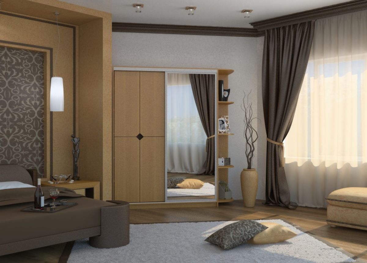 Шкаф-купе Вера 1500 ЛДСП+Зеркало (Монорельс) ЛДСП 1 кат.